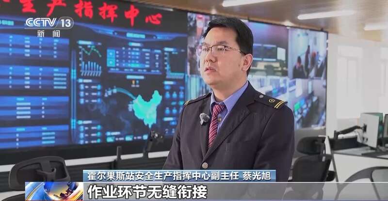 霍尔果斯站安全生产指挥中心副主任 蔡光旭:通过精准车流预报、作业环节无缝衔接,确保日班计划的高质量兑现,为全年运输上量开了好头。
