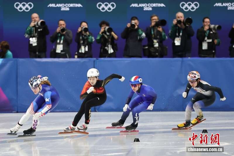 当地时间2月10日,在意大利米兰进行的2026年米兰-科尔蒂纳冬奥会短道速滑女子500米预赛中,首次参加冬奥会的中国选手王欣然(左二)以43秒246的成绩排名小组第一,晋级四分之一决赛。