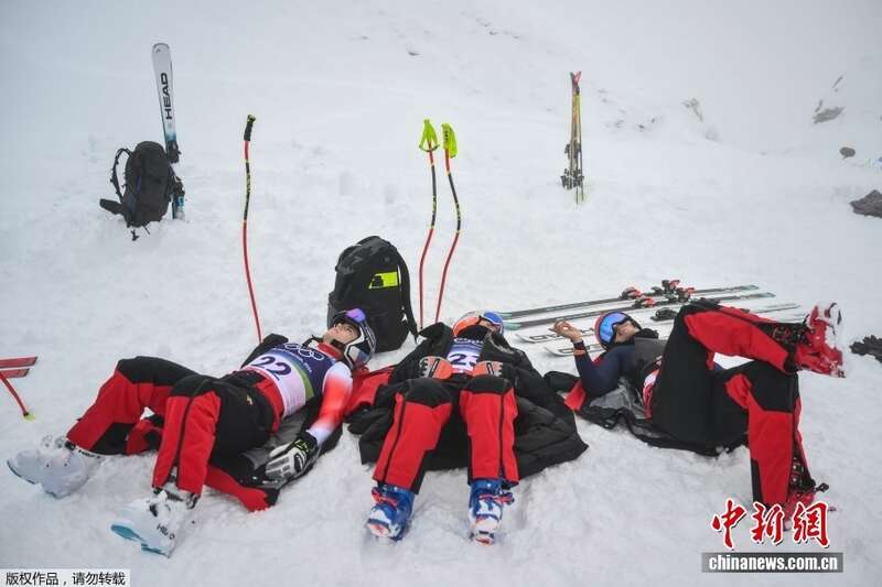 当地时间2月6日,在米兰冬奥会高山滑雪女子滑降比赛官方训练期间,由于赛道起雾导致训练暂停,选手们选择就地“葛优瘫”休息。