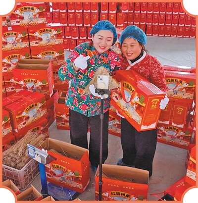 河南省新乡市原阳县路寨乡李庄村村民在电商平台直播带货。张燕摄(影像中国)
