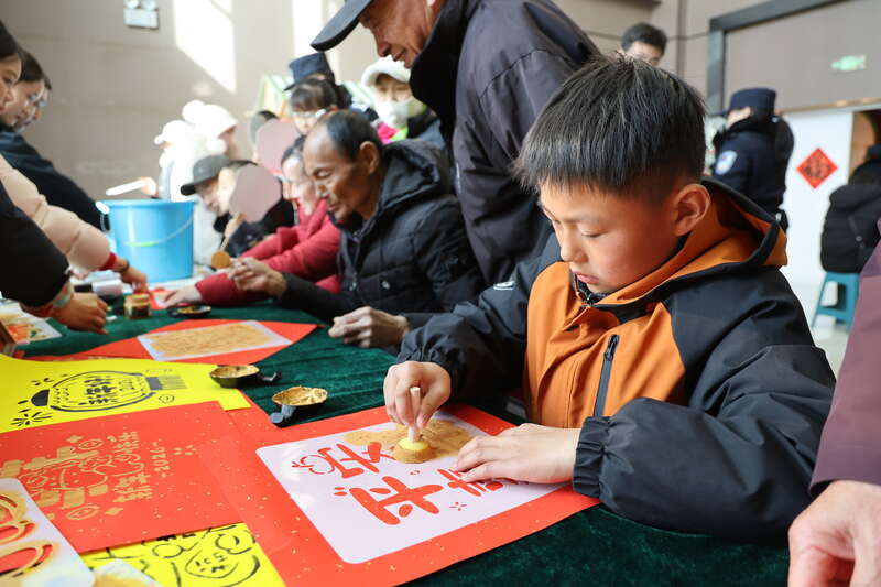 兵团豫剧团带来经典戏曲专场演出,经典剧目轮番登台,悠扬的曲韵回荡在广场上空,通过戏曲艺术传递兵团人的家国情怀与新春期盼,展现中华优秀传统文化的深厚魅力。在“指尖承非遗·体验展示区”,非遗代表性传承人现场教学书法、剪纸等技艺,现场群众尝试手写福字、剪窗花。