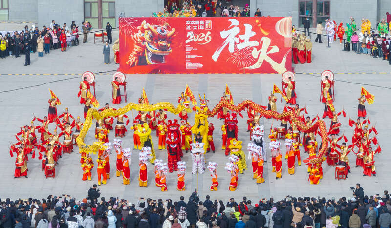 中国青年报客户端讯(通讯员 姬安妮 叶云清 中青报·中青网记者王雪迎)2月10日是北方农历小年,集社火展演、非遗体验、年货展销、互动游艺于一体,新疆生产建设兵团2026年新春社火活动在第二师铁门关市启动,标志着兵团“欢欢喜喜过大年”系列活动全面展开。
