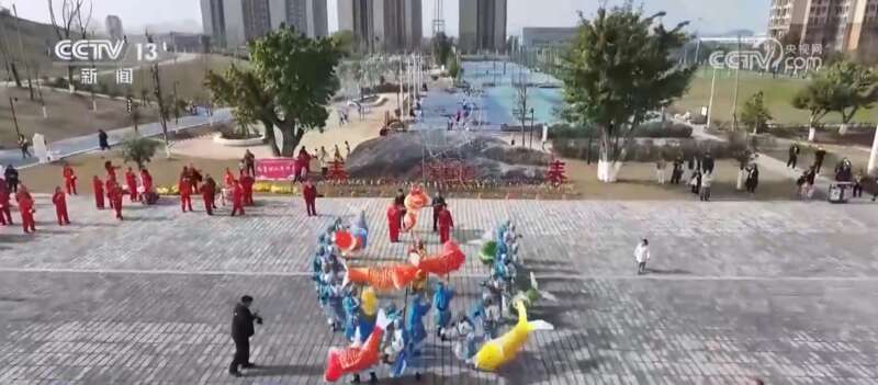 这两天,重庆市大足区的年节氛围热闹起来,鲤鱼灯舞开启迎新春巡游。巡游队伍穿行在集镇街巷,吸引了不少市民、游客观看、互动。