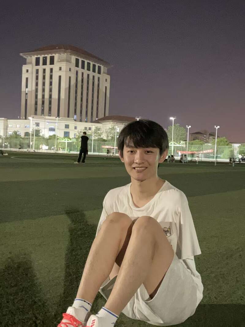 王海港在校园操场的草坪上休息。受访者本人供图