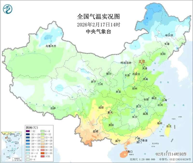 明天开始,江南、华南等地也将加入升温行列。一直到大年初四、初五时,各地气温将达到阶段性高点,华北南部及其以南大片区域最高气温将突破20℃,东北不少地方也能达到10℃左右。