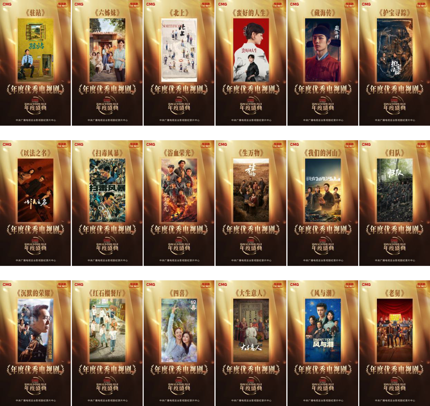 《驻站》《六姊妹》《北上》《蛮好的人生》《藏海传》《护宝寻踪》《以法之名》《扫毒风暴》《浴血荣光》《生万物》《我们的河山》《归队》《沉默的荣耀》《红石榴餐厅》《四喜》《大生意人》《风与潮》《老舅》18部作品获得“年度优秀电视剧”荣誉,这些作品扎根现实沃土,以扎实的创作功底和强烈的时代共鸣赢得了广大观众的认可。