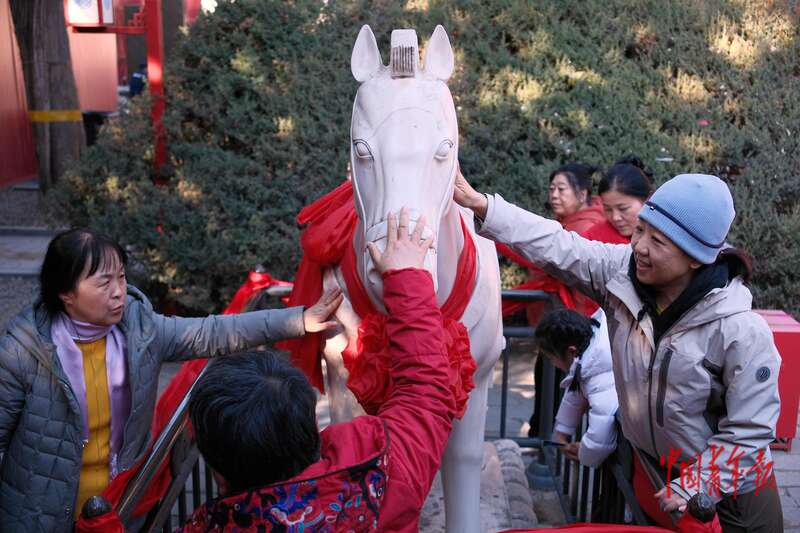 2月18日,北京东岳庙庙会,“玉马”吸引众多游客前来“摸马祈福”。中青报·中青网记者 田嘉硕/摄