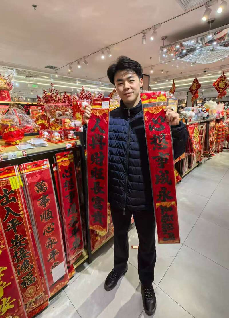 新年将至,徐诗凯前往超市挑选春联。受访者供图