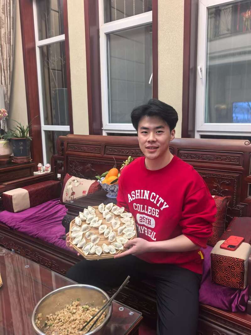 徐诗凯与家人一起包饺子。受访者供图