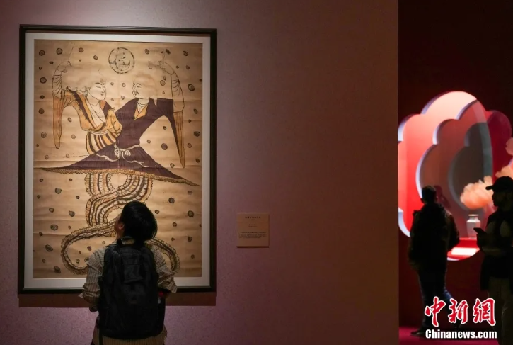 民众欣赏《伏羲女娲像立幅》。(资料图)中新社记者 赵文宇 摄