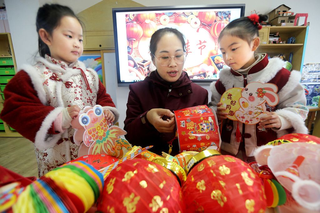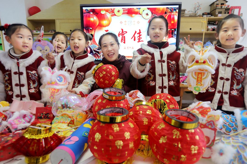 当日,江苏省连云港市钟声幸福幼儿园开展“萌娃制作花灯迎元宵”主题活动,小朋友们在老师的指导下,制作图案精美、色彩鲜艳的创意花灯,亲身体验中国民俗文化魅力,喜迎即将到来的元宵佳节。