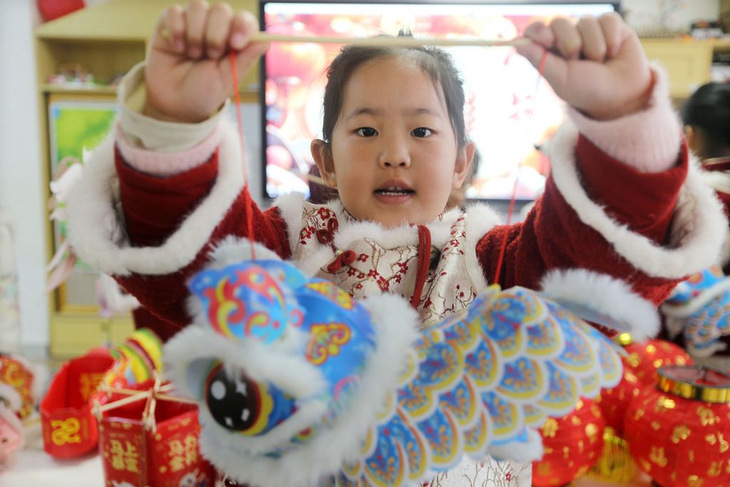 江苏连云港:萌娃制作花灯迎元宵