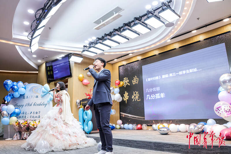 2月28日,北京理工大学附属中学高中部,高三(一)班举行班级成人礼活动,同学们欢聚一堂一起唱歌。中青在线记者 陈思阳/摄
