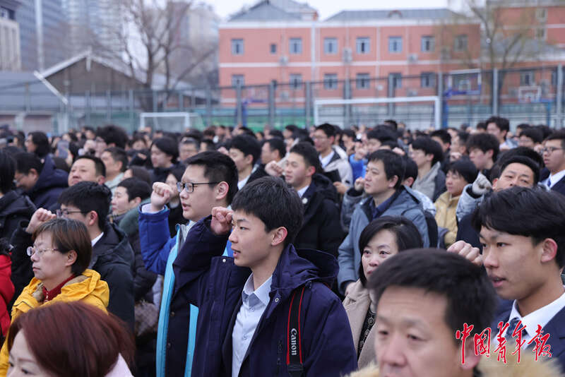 2月28日,北京理工大学附属中学高中部,学校举行2026届高三成人仪式暨百日誓师大会,学校老师和学生家长共同见证孩子们的成人仪式。中青在线记者 陈思阳/摄