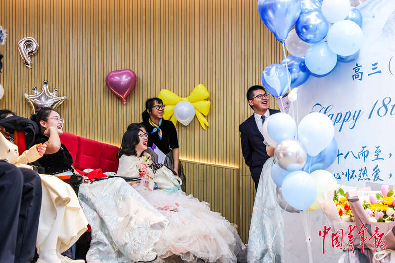 2月28日,北京理工大学附属中学高中部,高三(一)班举行班级成人礼活动,班主任、任课教师、学生家长和班级全体同学共同庆祝。中青在线记者 陈思阳/摄