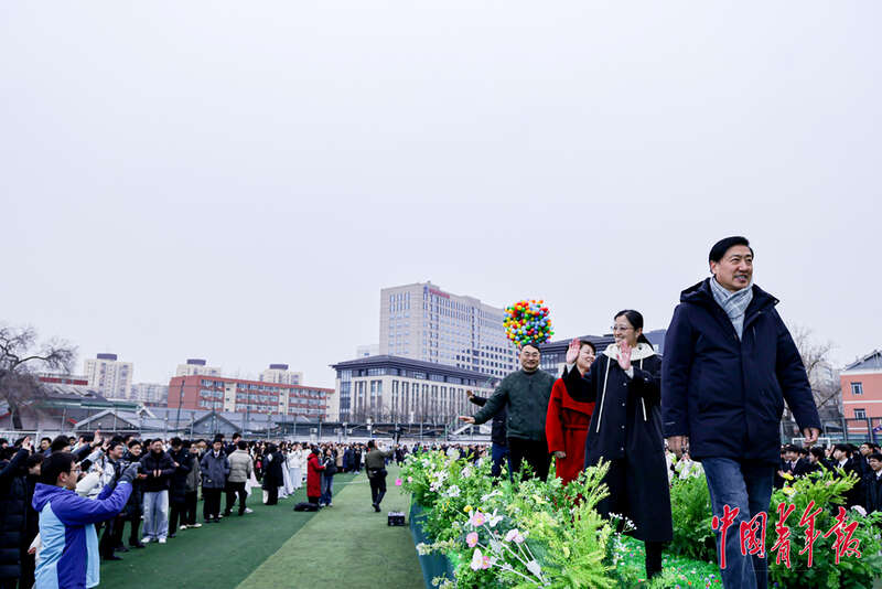 2月28日,北京理工大学附属中学高中部,2026届高三学子和家长一起走过成人T台。中青在线记者 陈思阳/摄