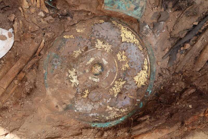 M12墓室中,300余枚錾刻着胡人乐舞图案的银箔片,结合墓主佩戴铜下颌托的习俗,考古人员推测其可能为粟特人;M27墓室内的圆形土台疑似祆教火坛,佐以出土的仿拜占庭金币,不排除墓主也是粟特人。