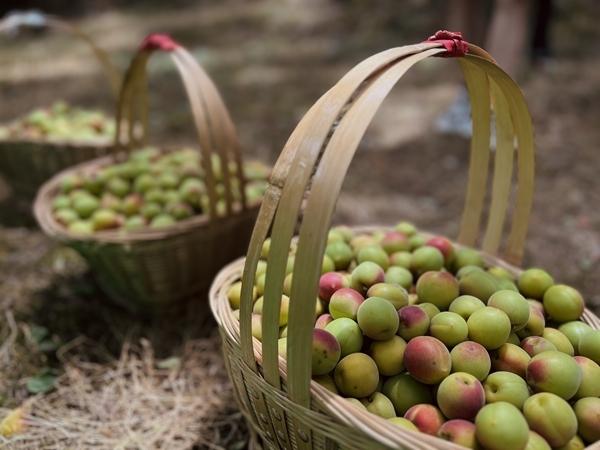 记者到访的时候,漫山遍野的青梅花形成了一片花海,约4个月后,它们的枝干上将结出累累硕果。在青梅丰收时节,附近村民常会用背篼、麻袋背着自家种的青梅来厂里出售,那也是一年中高艺最忙的时候。