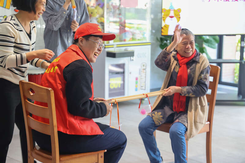 志愿者与长者做游戏。肖建平/摄