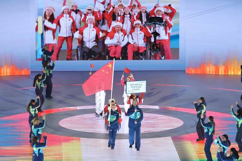 中国代表团第14位入场,现场大屏幕同时展示了科尔蒂纳、米兰与泰塞罗的中国代表团成员向观众及队友致意的画面。本届冬残奥会,中国代表团由70名运动员组成,将参加6个大项中的71个小项角逐,为我国参加境外冬残奥会项目最多、运动员规模最大的一届。