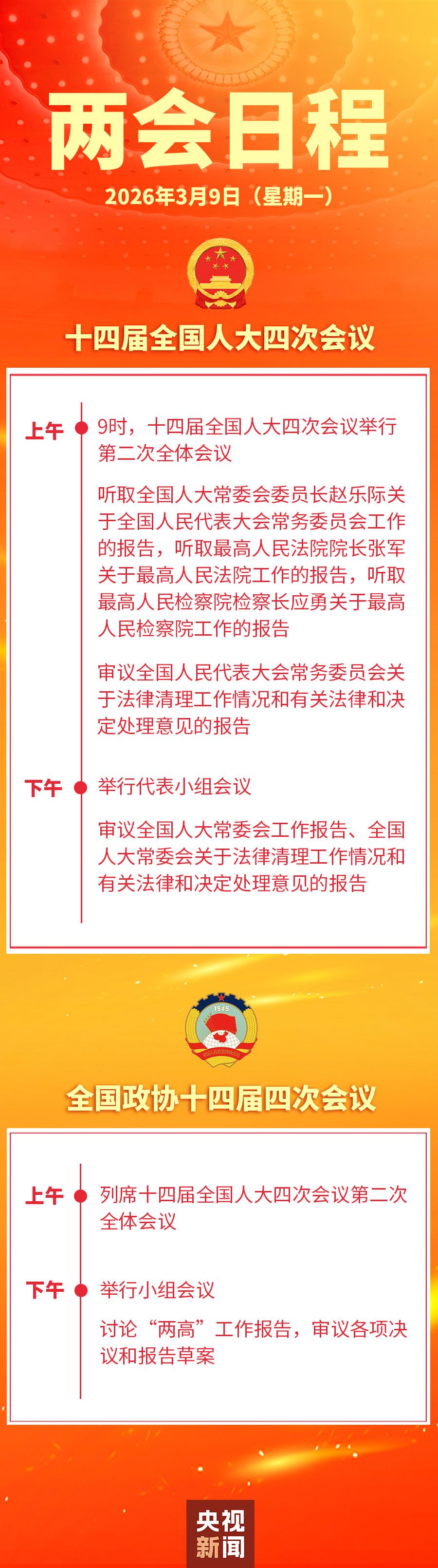 今天(9日)上午9时,十四届全国人大四次会议将在人民大会堂举行第二次全体会议,听取全国人大常委会工作报告和“两高”工作报告。
