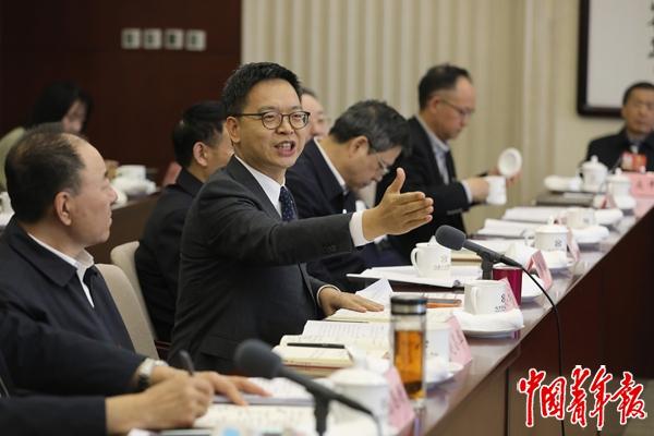 3月9日下午,北京会议中心,全国政协十四届四次会议社会科学界别小组会,全国政协委员、中豪律师事务所管委会主席袁小彬发言。中青报·中青网记者 陈剑/摄