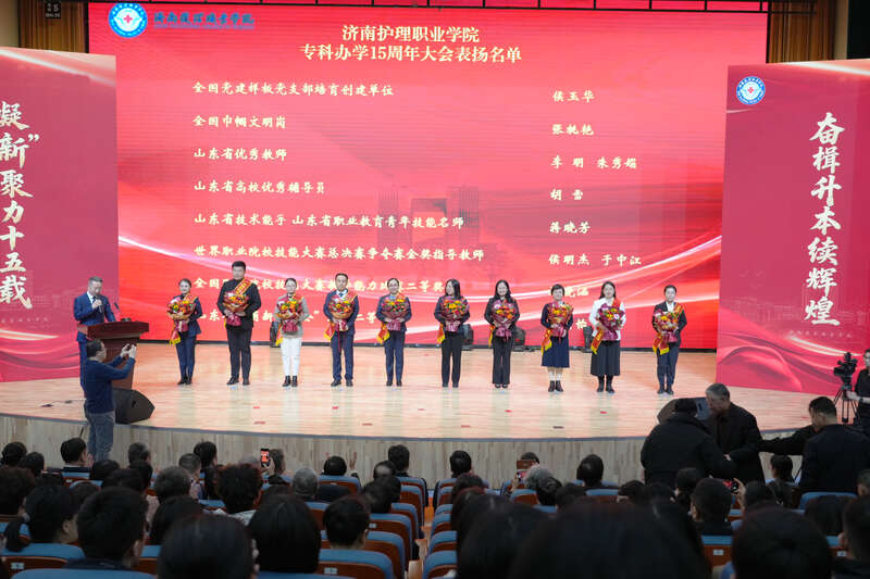 “十五年来,济南护理职业学院坚持医教协同、产教融合,紧密对接健康山东、健康济南建设需求,高水平专业群建设成效显著,技能竞赛屡创佳绩,毕业生就业率、留济率稳居高位,为全省、全市卫生健康事业培养输送了大批德技并修的高素质技术技能人才。”济南市委常委、宣传部部长、市委教育工委书记马保岭评价。