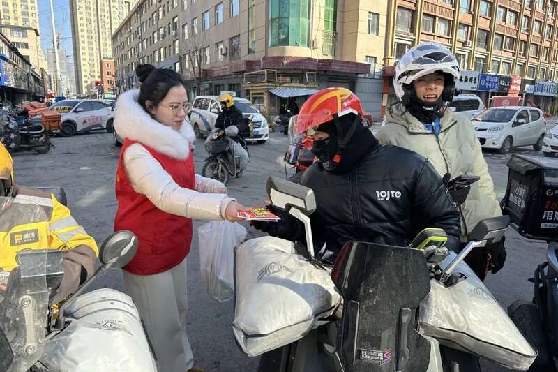 在“新相伴·迎新春”关爱活动中,团延边州委组织志愿者为600多名快递小哥和外卖骑手等新就业人群,发放暖宝贴、保暖手套等防寒物资500多份,大米、豆油等生活慰问品160多份。同时,在快递外卖集中区域设立爱心服务站,把关怀延伸至周边市场商户、老年摊主等群体,让更多户外劳动者感受到冬日暖意。