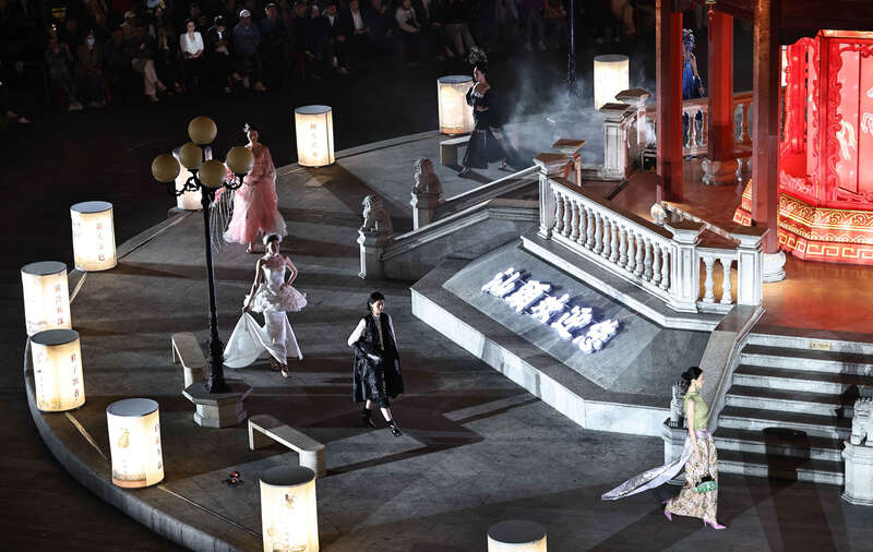 3月16日,广东汕头,模特在百年石板路上走秀。刘占崑/摄
