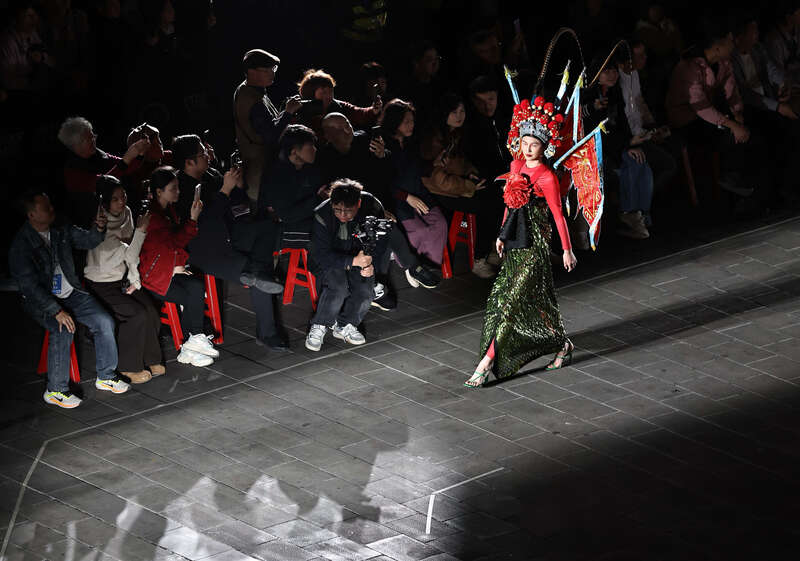 3月16日,广东汕头,传统潮剧服饰在时尚舞台上熠熠生辉。刘占崑/摄