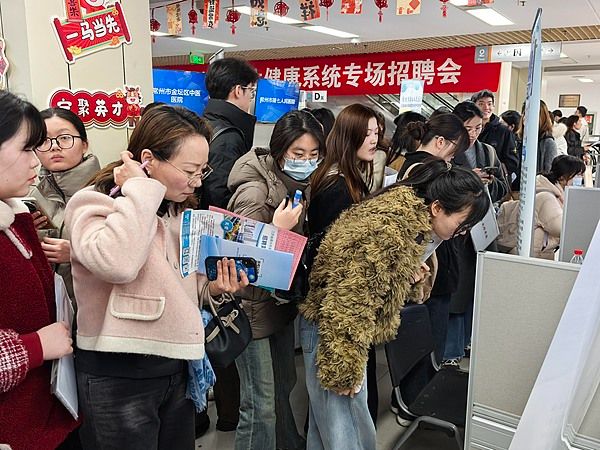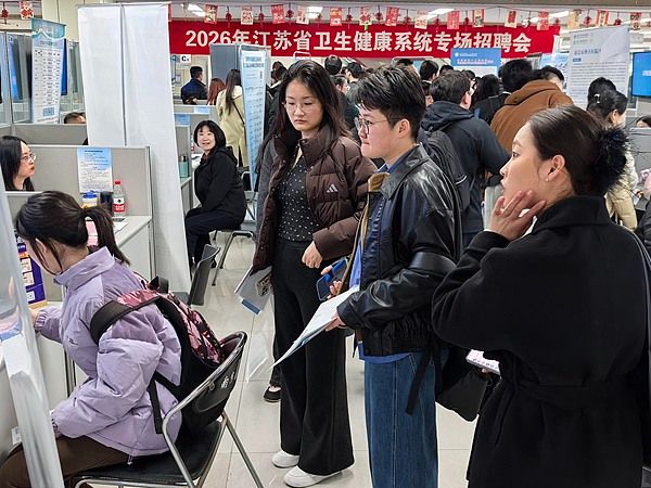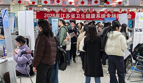 2026年3月20日,南京,江苏省卫健委医疗卫生专场招聘会在人才大厦举行。来自全省118家卫健委医疗卫生相关单位进场招贤纳才,提供临床医生、临床医技、老年医学科等千余个岗位,吸引众多相关专业应聘者前来应聘,场面火爆。