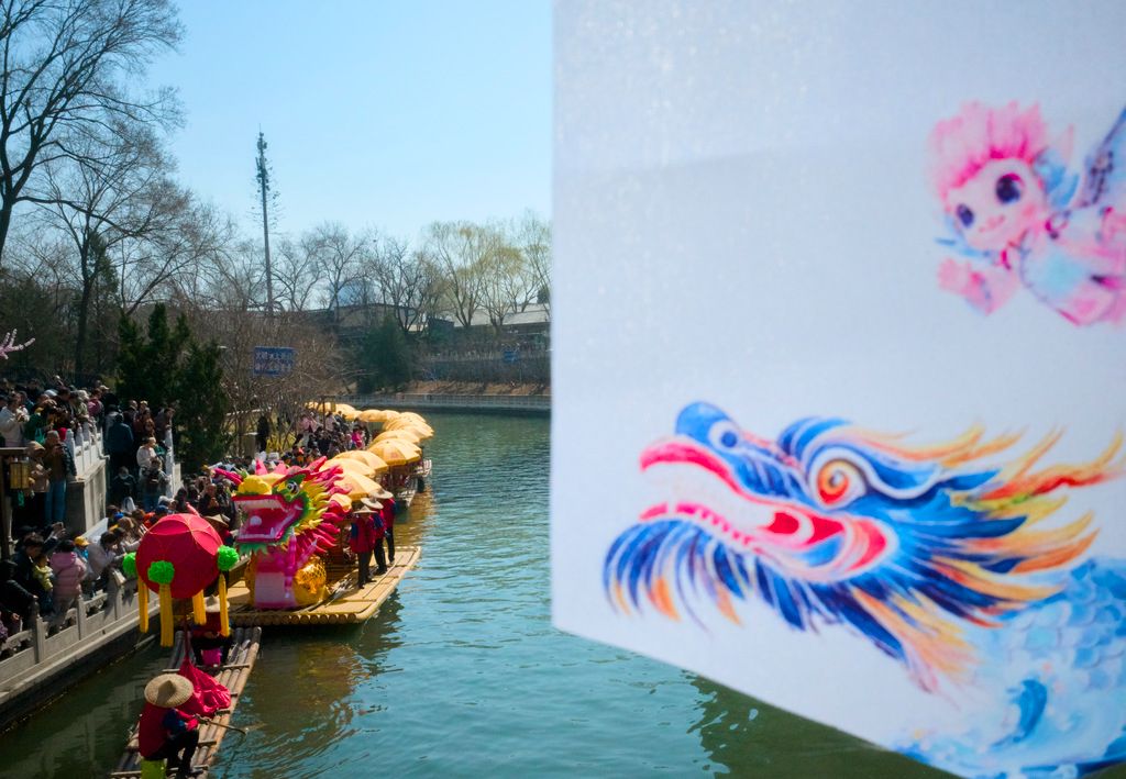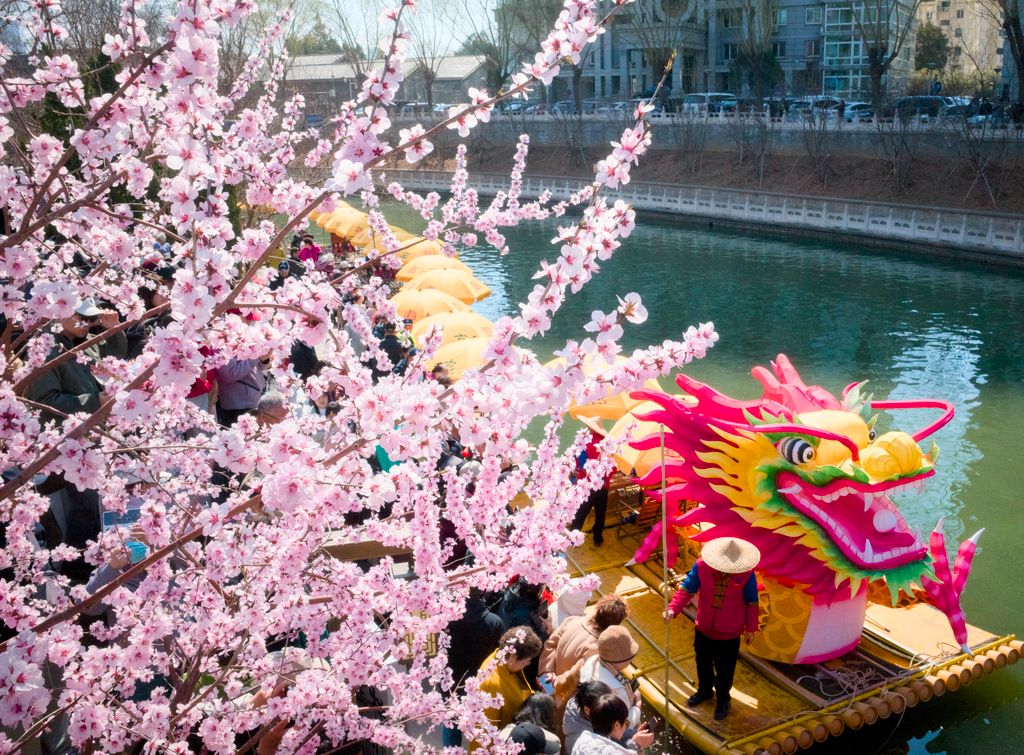2026年3月20日,北京,二月二龙抬头恰逢春分节气,来自广西阳朔的非遗“金龙巡游”来到北京大运河,为现场观众送上美好祝福。