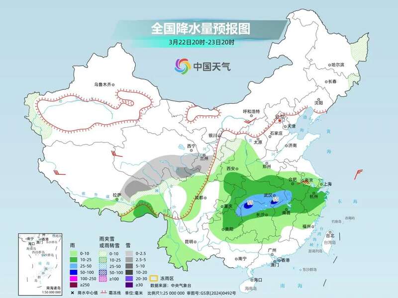但“潮湿”远没有到达终点——后天起至26日,南方地区还将有一次大范围降水过程,大部地区有小到中雨,局地大雨或暴雨;西藏东部也仍多雨雪天气,东南部有大到暴雪,低海拔区域中到大雨。