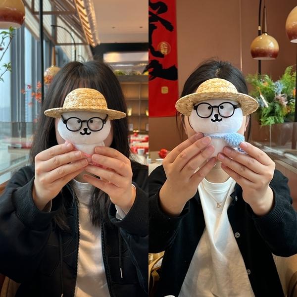 对大学生袁汪汪来说,娃娃是她与朋友之间的情感纽带。她们会提前约好“这次出门带这几个娃娃”,甚至会根据不同场景精心搭配——看樱花时带着粉色系的娃娃,吃饭时带和食物同色系的娃娃,有时还会“专门为了娃娃约一顿饭”。两个人一起商量带哪个、怎么搭配、去哪儿拍,娃娃让每一次聚会都多了一个理由和话题。她们还会模仿网上流行的卡点视频,给娃娃拍同款短视频。