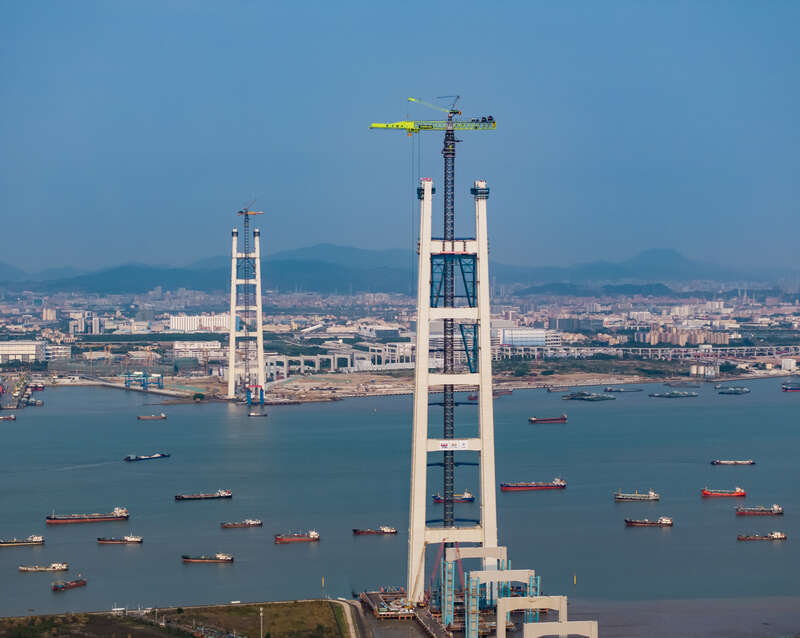 342米!世界最高双层悬索桥主塔亮相珠江口