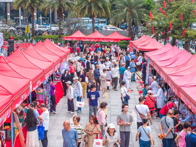 主办方设置的青年文明号志愿服务集市和红棉潮墟汇人头攒动,吸引了众多年轻人打卡。在红棉悦读摊位前,市民翻阅红色书籍;在版权保护摊位上,工作人员通过趣味互动;红棉文创摊位展出各种特色文创产品,让红色记忆变得可触可感;在“广东全民终身学习平台”互动专区,市民扫码即可获取优质、免费的线上学习资源。
