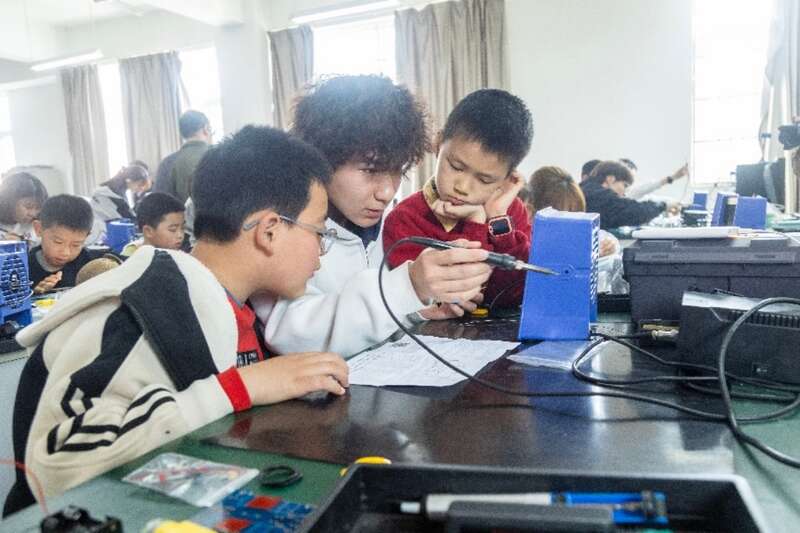 “每个孩子需要大学生志愿者一对一指导,实验室要开放,耗材要准备,安全要保障。但我们算的不是经济账。”电子工程学院院长余海军说,学院常态化与淮南市周边中小学开展科普合作,这次刚好把已有的科普活动与教职工托管需求结合起来,是一次“水到渠成”的实践。