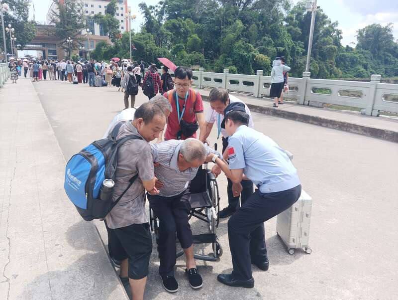 4月3日8时,晨光洒在广西东兴口岸的中越友谊大桥上,一位坐着轮椅的老人停在入境大厅台阶下犯了难,他攥着护照,眉头紧锁,左右张望寻求帮助。“大爷,您别急,我来帮您。”26岁的1369青年志愿服务队队员李俊锟快步上前,稳稳扶住轮椅,将老人连同轮椅一起抬上台阶,直到老人顺利通关,他脸上才露出释然的笑容。