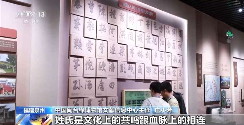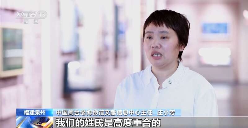 中国闽台缘博物馆文献信息中心主任 庄小芳:姓氏是我们人在追问我是谁、我从哪来的一个根本标志。福建跟台湾,姓氏是高度重合的,特别是两地的前十大姓基本一致,像福建这边“陈林半天下”,台湾也是如此,因为台湾大多数的民众,其实是从福建跟广东渡海过去的。