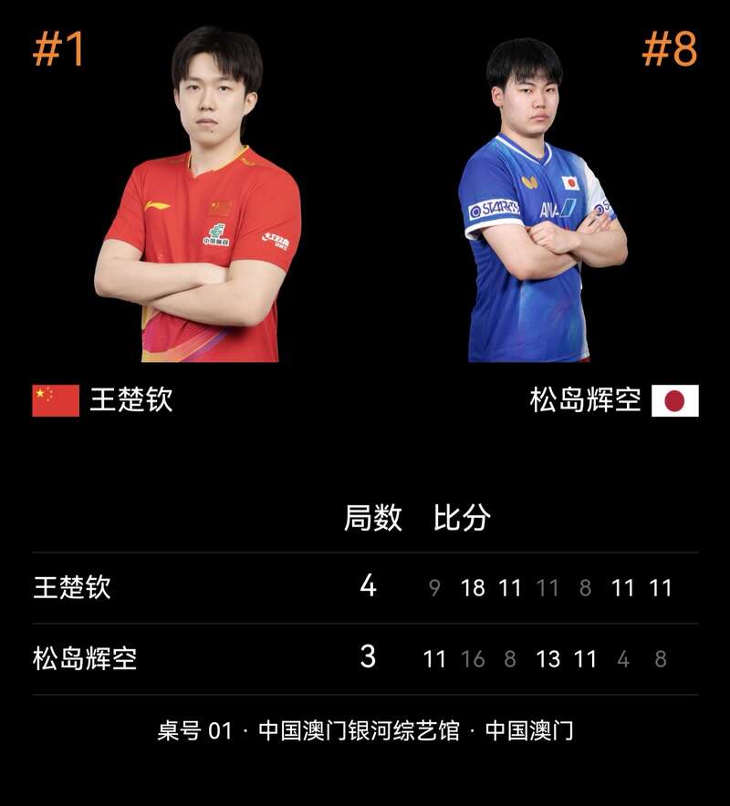 王楚钦与松岛辉空今天的比分表
