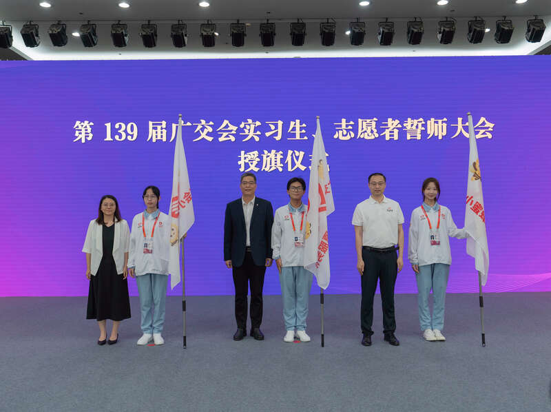 第139届广交会实习生、志愿者誓师大会授旗仪式。主办方供图
