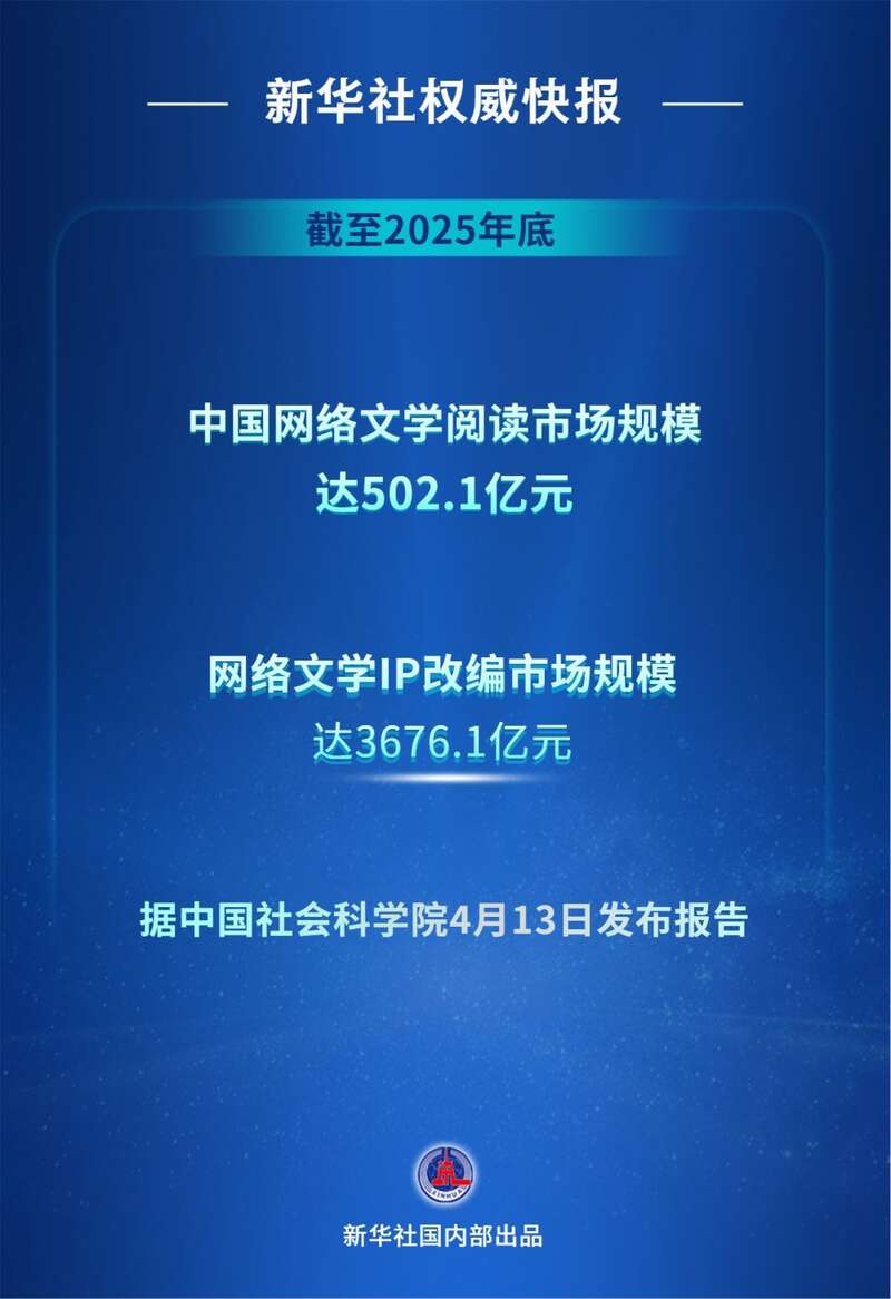中国社会科学院4月13日在京发布的《2025中国网络文学发展研究报告》中,一组数据格外醒目:中国网络文学IP改编市场规模达到3676.1亿元,同比增长23.13%。这不仅是数字的大幅跃升,更标志着网络文学从“阅读赛道”加速驶入“产业快车道”,成为文化产业不可忽视的力量。