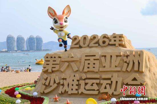 中新社记者 骆云飞 摄 第六届亚洲沙滩运动会主题沙雕亮相三亚湾。