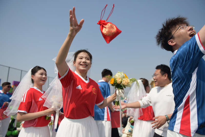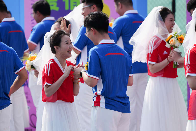 中国青年报客户端讯(中青报·中青网记者胡春艳)4月25日上午,天津市宁河区举办“青春同路·爱在绿茵”第四届京津冀青年集体婚礼,来自京津冀三地超百名新人携手步入婚姻殿堂。