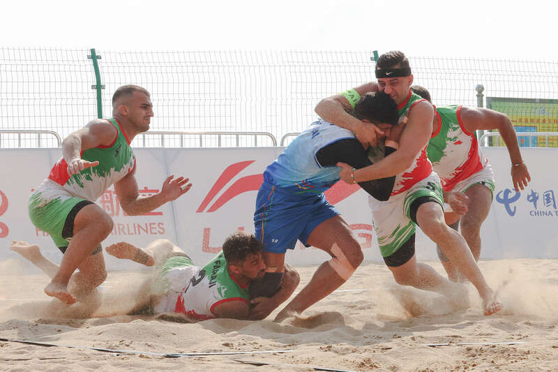 今天下午举行的本届亚沙会男子沙滩卡巴迪决赛是伊朗队与印度队的比赛,现场座无虚席。尽管这项运动在中国属于小众项目,但中国观众对卡巴迪却有一种天然的熟悉感。比赛中场休息时,现场主持人向观众提问,观看这个比赛有什么感受?有中国观众回应说,“太像‘老鹰抓小鸡’了。”