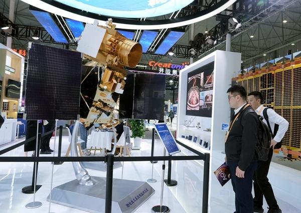 4月24日,四川成都,观众参观陆地生态系统碳监测卫星模型。当日,2026年中国航天日科普展示活动在成都举办。视觉中国供图