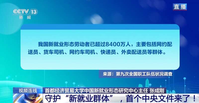 首都经济贸易大学中国新就业形态研究中心主任 张成刚:这份文件规格非常高。从文件本身的政策语言表达来看: