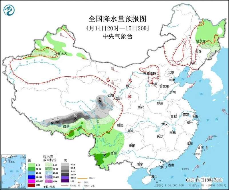 新疆沿天山地区、吉林东部和北部、西藏中东部和南部、青海东南部、川西高原北部等地部分地区有小到中雪或雨夹雪。黑龙江中部、新疆北部、西藏东南部、川西高原南部、四川南部、云南大部等地部分地区有小到中雨。