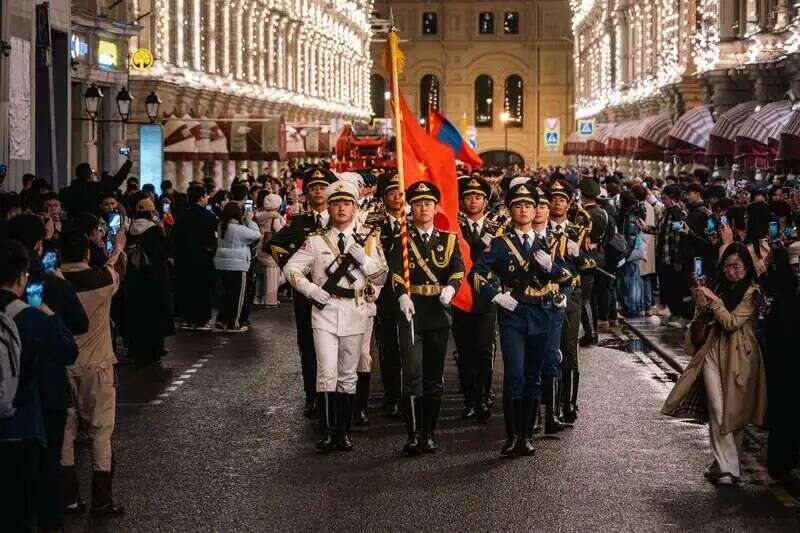 综合新华社、CCTV国际时讯、中国青年报客户端,4月24日,被誉为“中国排面”的中国人民解放军仪仗司礼大队119名队员抵达莫斯科,为参加5月9日红场阅兵进行准备训练。5月7日,他们参加了日间总彩排。