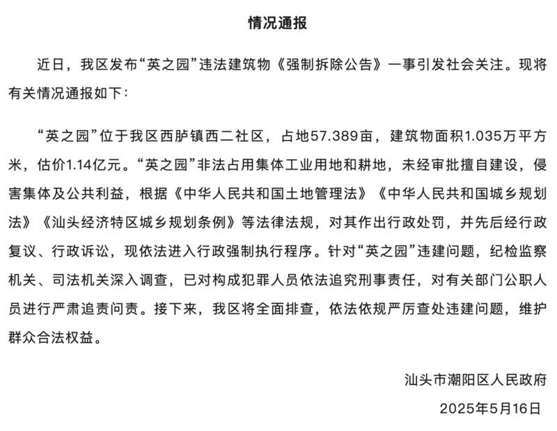 官方通报“10亿违建豪宅”被责令拆除:已追究刑事责任,追责公职人员